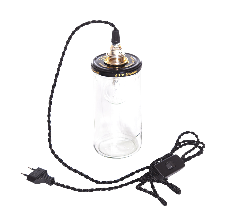 De Pickle Light met zwart koord is een tafellamp van 25 cm, gemaakt van de welbekende Kesbeke augurkenpot. Deze oude Kesbeke augurkenpot krijgt zo een nieuw leven als design lamp. Stijlvol, mooi en perfect als bedlampje voor op het nachtkastje, dressoir of als leeslamp in dat donkere hoekje naast de bank. Exclusief lamp.