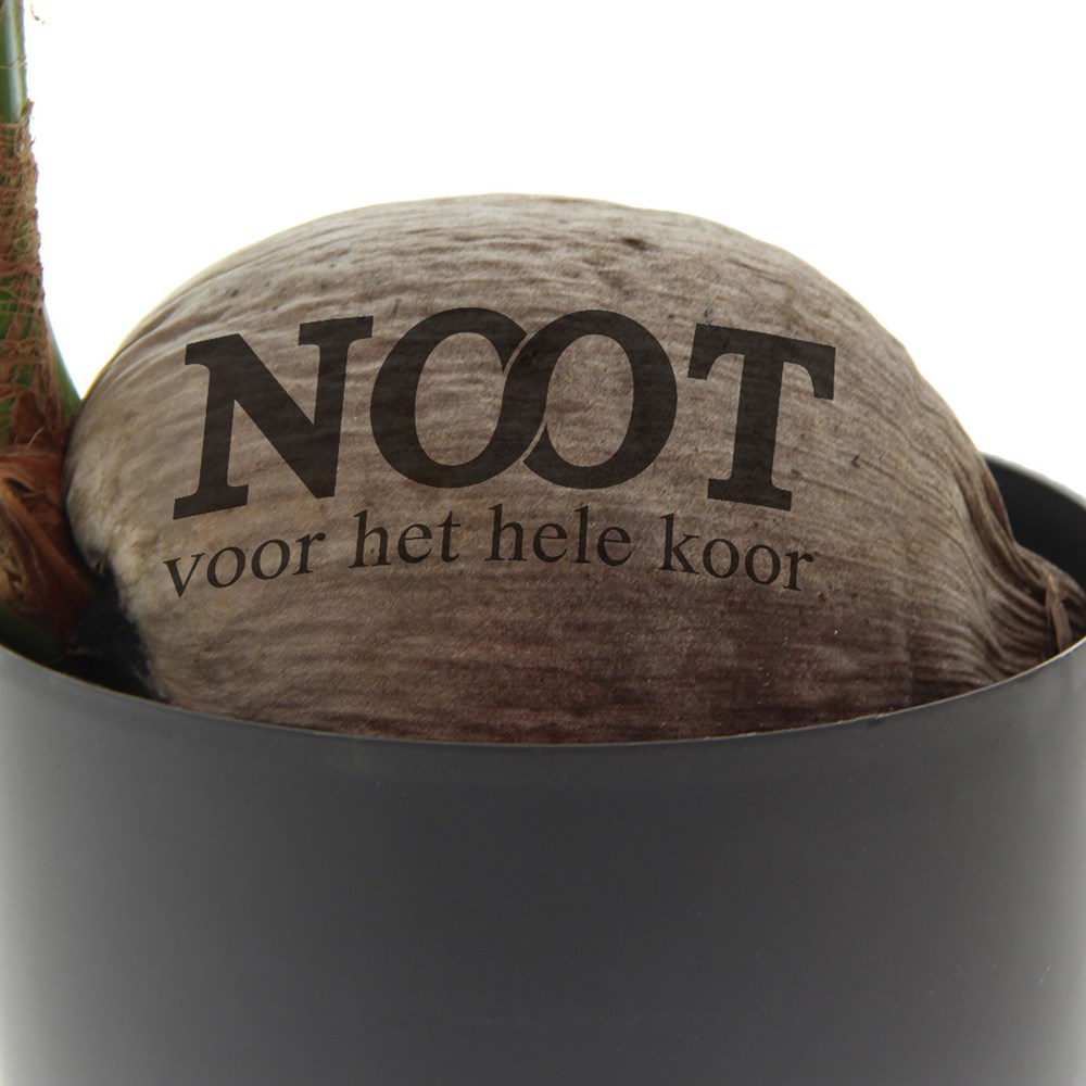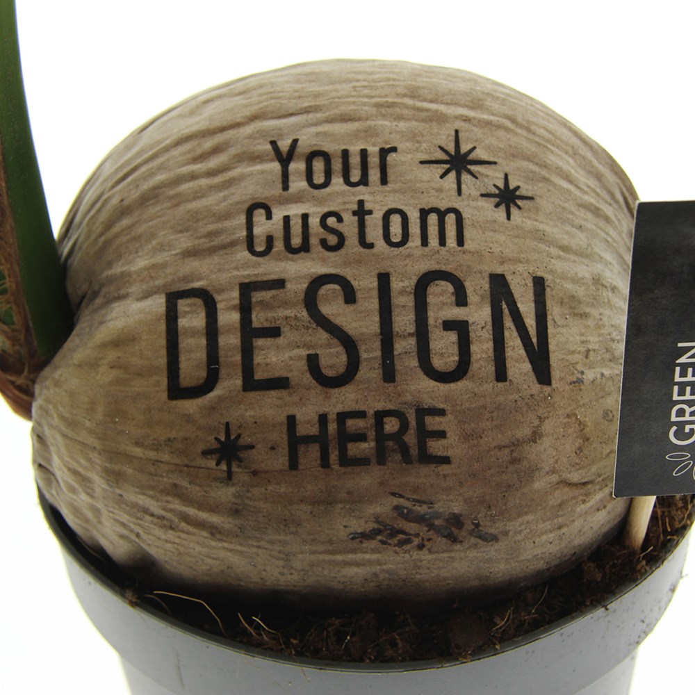 Ontdek de betoverende pracht van deze levende Kokospalm Green Brandingz®, een ware blikvanger die direct de aandacht trekt. Deze Kokospalm brengt een onweerstaanbaar tropisch gevoel naar zowel kantoor als thuis. De imposante kokosnoot op zichzelf is al een opvallend fenomeen, met een prachtige palm die er majestueus uit ontspruit. Maar stel je eens voor hoe bijzonder dit wordt wanneer jouw eigen logo of ontwerp erop prijkt.