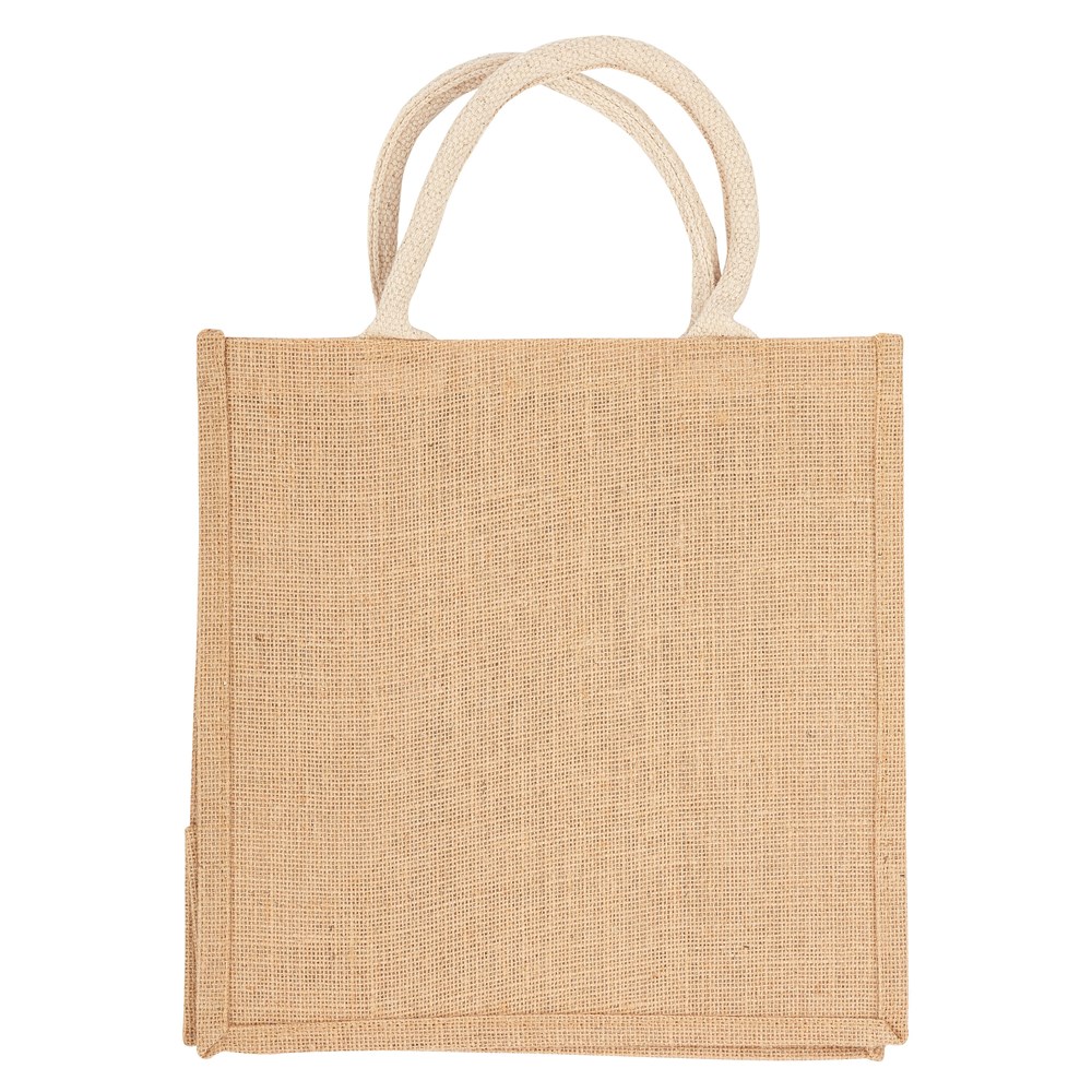 De Green & Good Brighton Jute Bag is gemaakt van natuurlijk en duurzaam jute. Populaire winkel- en cadeautas met vierkant formaat en katoenen singels over touwgrepen. Van binnen gevoerd met een gelamineerd oppervlak voor eenvoudig schoonmaken en stevigheid.
