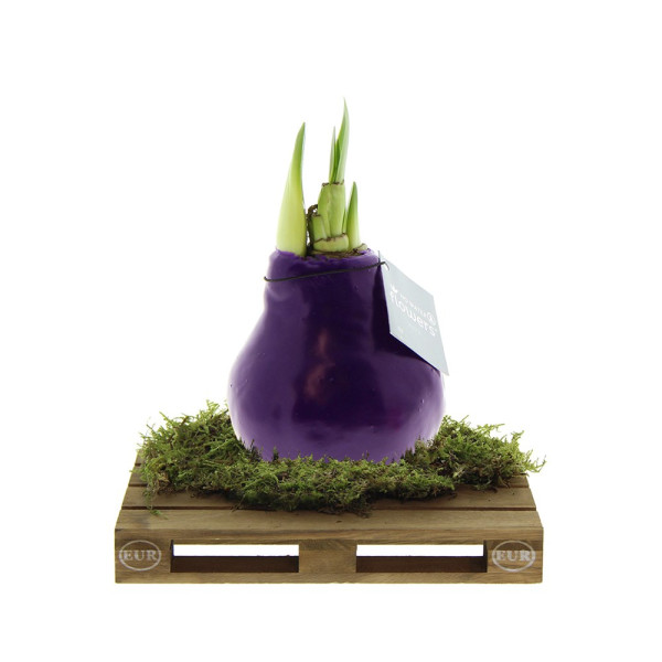 No Water Flowers® zijn een luxe, groeiend en bloeiend geschenk. De levende No Water Flowers® staan bekend om de unieke handgemaakte wax amaryllisbollen. Deze speciaal geselecteerde en geteste amaryllisbollen hebben genoeg energie om zonder water te groeien en te bloeien. Authentieke No Water Flowers® geven vrij korte bloemstelen, vallen niet om en bloeien gegarandeerd. Iedere No Water Flowers® wordt zorgvuldig schoongemaakt en tot in perfectie gewaxt. Dit geeft de bloembol een eigentijdse en modieuze uitstraling. Deze No Water Flowers® is geplaatst op een gaaf mini palletje wat een stoere en gave verschijning is. Super tof voor bijvoorbeeld de logistieke sector. Bovendien zorgt dit ervoor dat de amaryllisbol extra stevig staat.