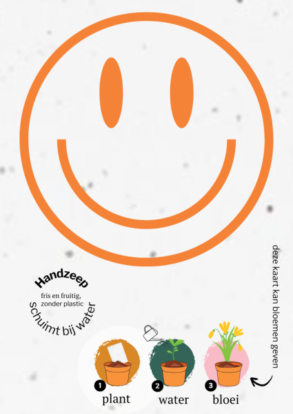 Vrolijke kaart met zeepje. Perfect in te zetten als bedankje. Het kaartje van Loofy's is gemaakt van 200 grams bloeipapier met een mix aan bloemenzaadjes. Deze kan je dus ook nog in de grond stoppen zodat je later van de mooiste bloemen kunt genieten. Dat is pas echt no-waste!