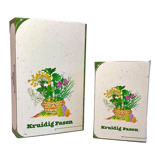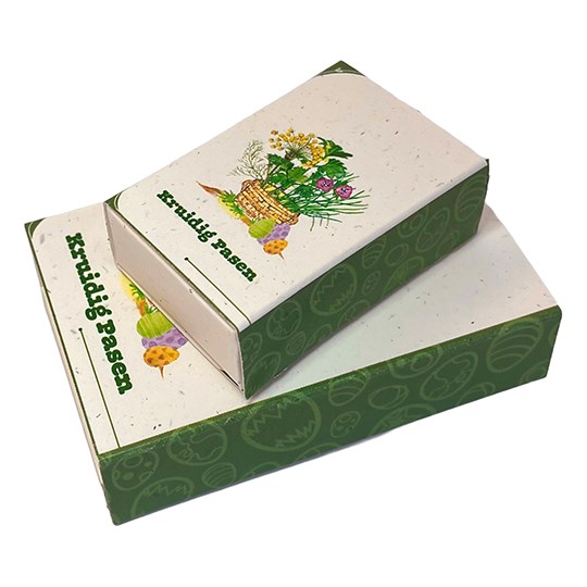 | Materiaal: | Tomatenvezelpapier, biologische zaadjes, biologische turfvrije aarde |