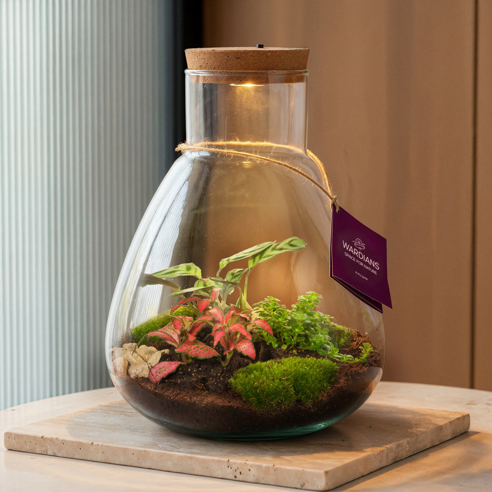 Ecosystemen staan symbool voor groei, balans en samenwerking. Een Wardians® plantenterrarium brengt niet alleen sfeer in huis of op kantoor, maar krijgt door personalisatie ook een functioneel karakter. Door de kurk of het hanglabel te bedrukken met jouw logo, slogan of boodschap, blijft jouw merk op een groene en originele manier top of mind.