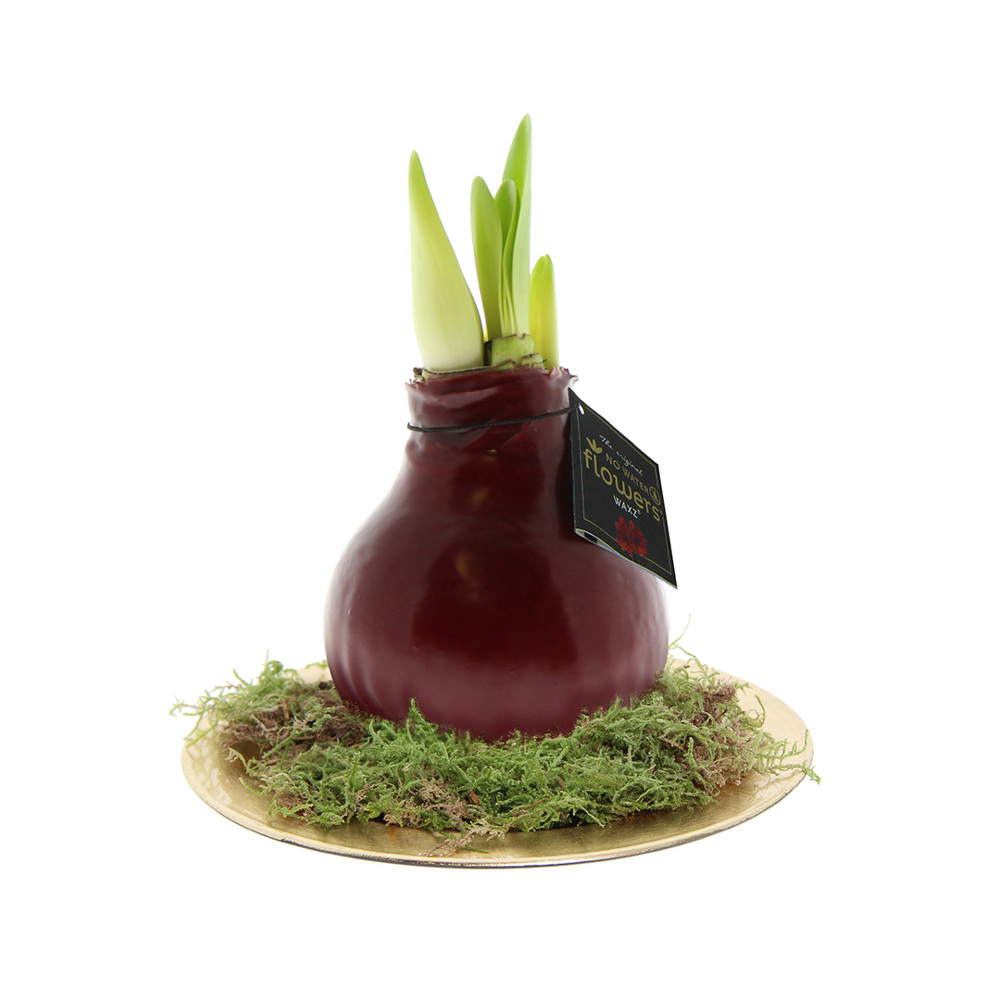 De Originele No Water Flowers® zijn makkelijk te herkennen aan het vierkante label die aan de bol bevestigd is. Deze amaryllisbollen hebben geen verzorging nodig. Zet de wax amaryllis op een lichte plek, maar niet in direct zonlicht en geniet van de prachtige bloemen die zich binnen 3 tot 5 weken ontwikkelen. Bloembollen zijn natuurproducten, elke bol is uniek op zichzelf en heeft een andere vorm.