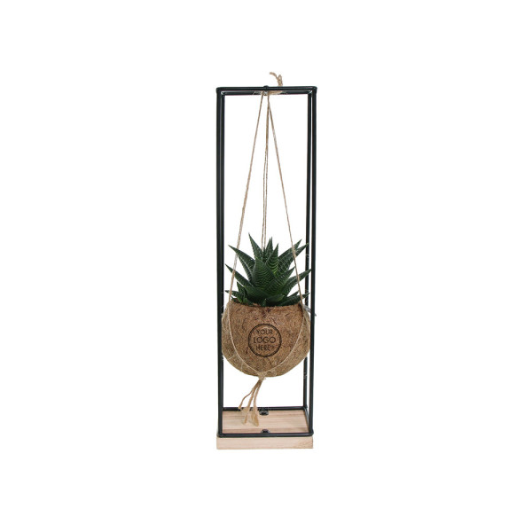De Kokodama®, een botanische schoonheid die geen plastic bevat en voor 99% natuurlijk en 100% biologisch afbreekbaar is, biedt een unieke en duurzame optie voor relatiegeschenken. Haar bol van kokosvezels creëert een gezellig en duurzaam huis voor trendy en bijzondere planten. Hangend aan het plafond of zittend op een tafel bureau, de Kokodama® kan in elk interieur haar natuurlijke habitat vinden. Gemaakt met de hand in Sri Lanka, draagt de Kokodama® bij aan de lokale economie en stimuleert het vakmanschap. Deze Kokodama® mix bevat verschillende soorten vetplanten, waardoor hij lang meegaat en zelfs voor mensen zonder groene vingers heel gemakkelijk te verzorgen is.