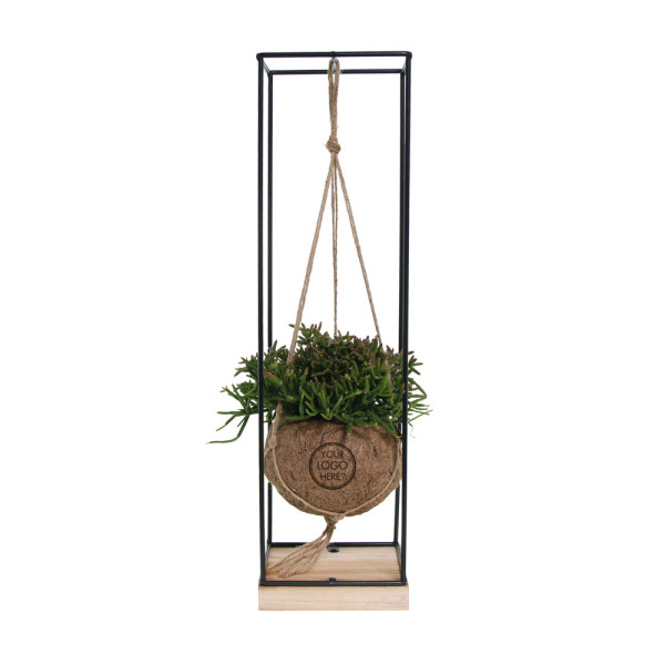 De Kokodama®, een botanische schoonheid die geen plastic bevat en voor 99% natuurlijk en 100% biologisch afbreekbaar is, biedt een unieke en duurzame optie voor relatiegeschenken. Haar bol van kokosvezels creëert een gezellig en duurzaam huis voor trendy en bijzondere planten. Hangend aan het plafond of zittend op een tafel bureau, de Kokodama® kan in elk interieur haar natuurlijke habitat vinden. Gemaakt met de hand in Sri Lanka, draagt de Kokodama® bij aan de lokale economie en stimuleert het vakmanschap. Deze Kokodama® variant bevat planten die lang meegaan.