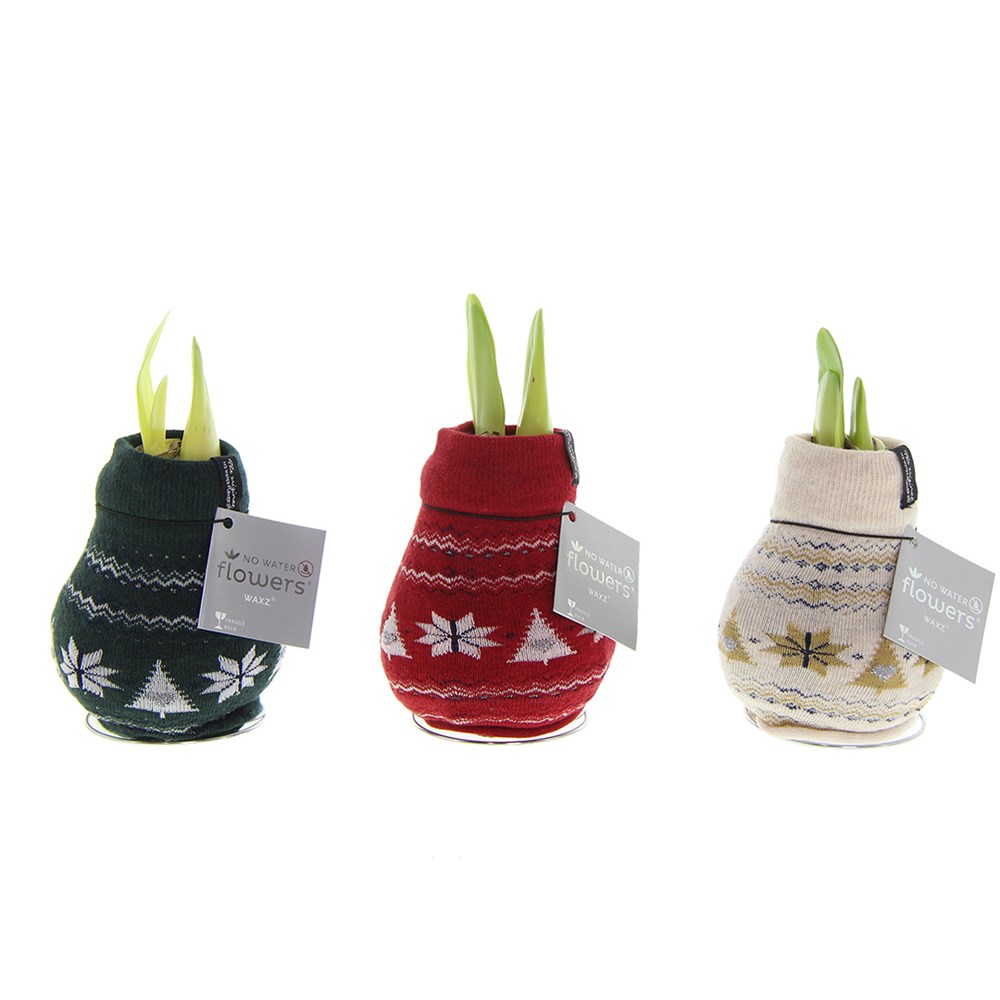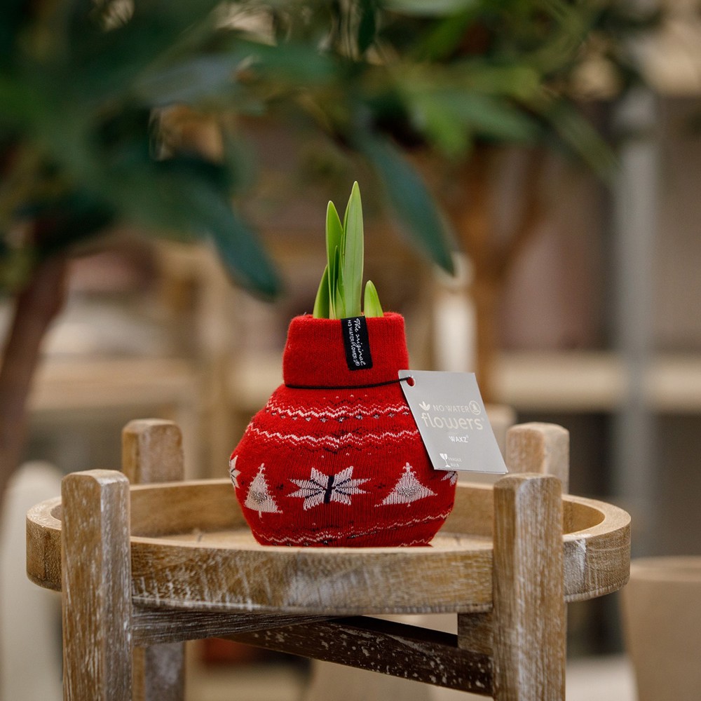 De No Water Flowers® Fashionz Nordic is een warm en sfeervol cadeau met Scandinavische uitstraling, perfect als feestelijk eindejaarsgeschenk. De levende No Water Flowers® staan bekend om de unieke handgemaakte wax amaryllisbollen. Deze speciaal geselecteerde en geteste amaryllisbollen hebben genoeg energie om zonder water te groeien en te bloeien. Authentieke No Water Flowers® geven vrij korte bloemstelen, vallen niet om en bloeien gegarandeerd. Iedere No Water Flowers® wordt zorgvuldig schoongemaakt en tot in perfectie gewaxt. Dit geeft de bloembol een eigentijdse en modieuze uitstraling.