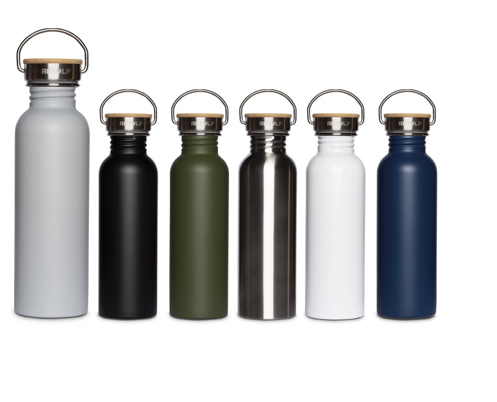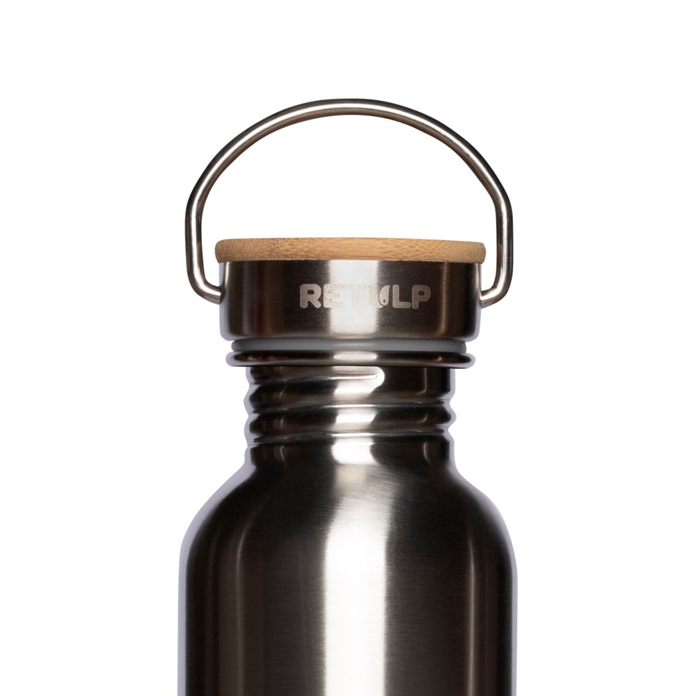 De Retulp Urban drinkfles 750ml is helemaal plasticvrij en heeft een stalen dop die afgewerkt is met bamboe. Water uit een RVS fles smaakt lekkerder omdat er geen smaakoverdracht plaatsvindt tussen het water en roestvrijstaal. Omdat de fles geheel van roestvrijstaal is gemaakt is deze gemakkelijk te schoon te houden. De drinkfles is gemaakt van slijtvast, duurzaam en 100% recyclebaar materiaal. Een goed alternatief voor vervuilende plastic waterflessen. Bij iedere verkochte drinkfles doneert Retulp 1000 keer de inhoud aan schoon drinkwater in derdewereldlanden, dus met een Retulp drinkfles levert u een goede maatschappelijke bijdrage! De drinkflessen zijn vanaf 48 stuks te graveren of te bedrukken.