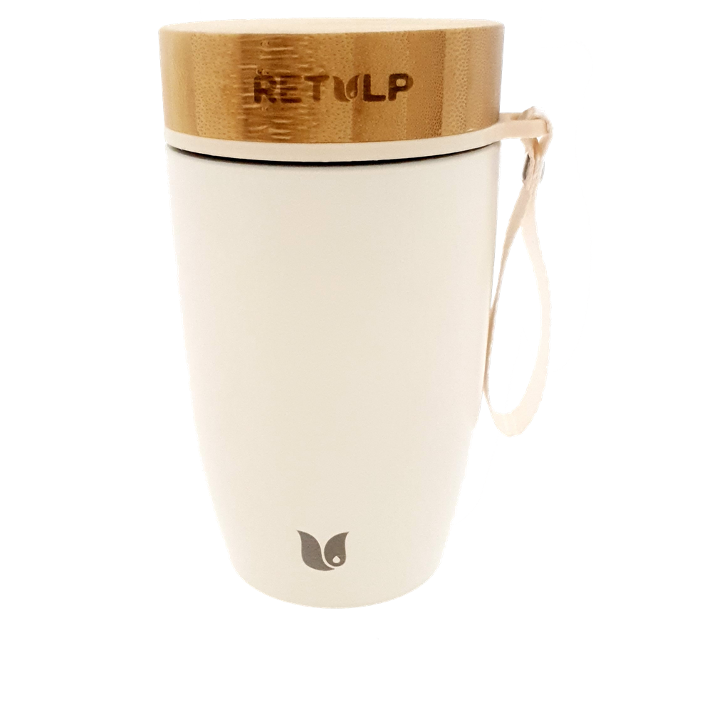 De Retulp Big Mug is een dubbelwandige, vacuümgeïsoleerde rvs lunchbox met schroefdop en een grote opening, waardoor deze gemakkelijk te vullen en te reinigen zijn. Eten en drinken uit een rvs-lunchbox smaakt lekkerder omdat er geen smaakoverdracht plaatsvindt tussen water en roestvrijstaal. De Retulp Big Mug is hierdoor ideaal voor het meenemen van bijvoorbeeld hete dranken, maar dient ook als yoghurtbeker, muesli beker of soepbeker. De BigMug Classic heeft in vergelijking met de Premium variant een standaard verpakking en een handig lusje. Bij elk verkochte lunch-to-go item wordt één boom gepland, dus met een Retulp lunch-to-go item levert u een goede maatschappelijke bijdrage! De Big Mugs zijn vanaf 20 stuks te graveren of te bedrukken.