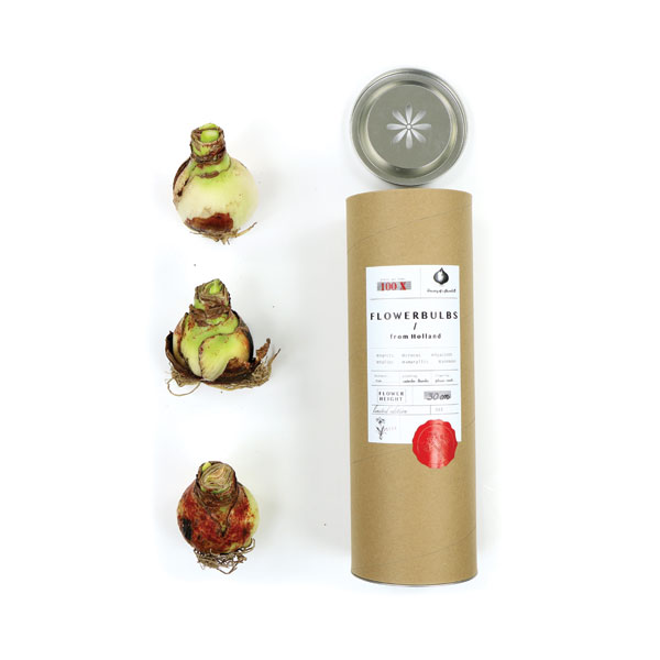 Amaryllis kraftkoker kerstgeschenk. Mooie koker met amaryllissen als kerstgeschenk met maar liefst 3 amaryllissen verpakt in vloeipapier. Perfect geschenk om te versturen naar relaties in warmere landen.
